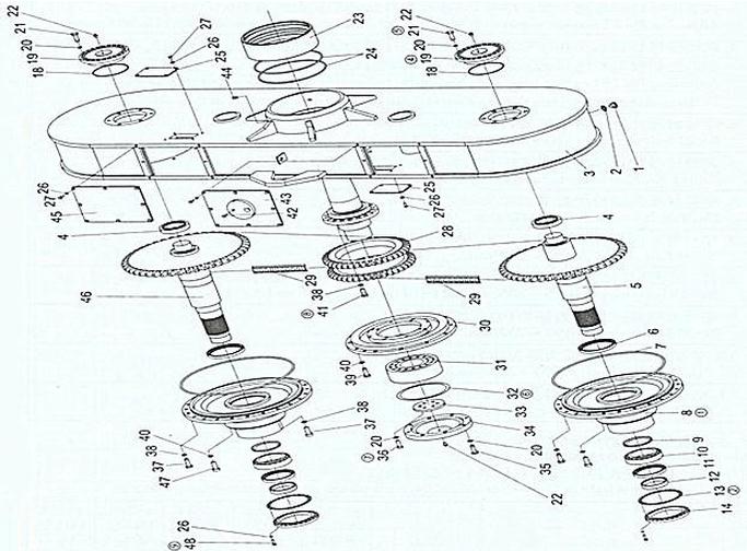 4.平衡箱每側(cè)加注23L90#重負(fù)荷齒輪油,主減速器及行星減速器加注28L90#重負(fù)荷齒輪油,每工作6個(gè)月或1000小時(shí)時(shí)更換齒輪油,各軸承加注足夠的3#鋰基潤(rùn)滑脂。